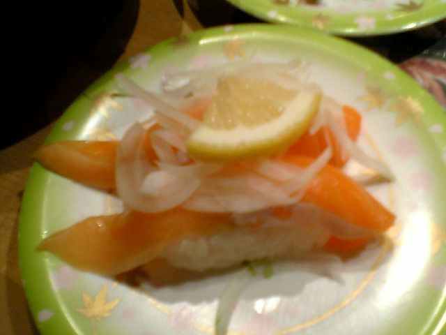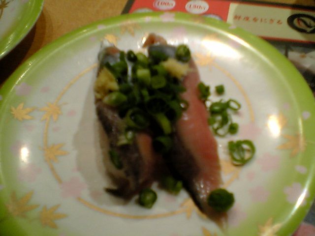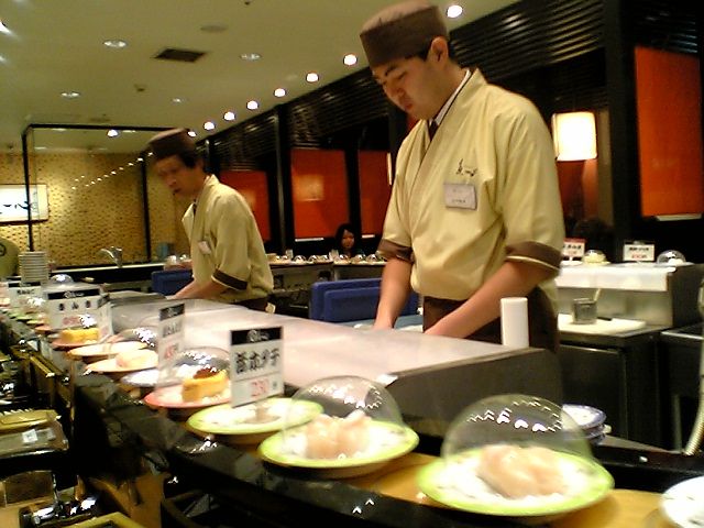 私以外の客は慣れた様子でカウンターの中で寿司を握っている職人さん(3-4人いた)に注文をしている.ベルトコンベアに廻っている寿司を手に取ることはほとんどない.おいおい,既に回転寿司じゃなくなってるぞ(苦笑).