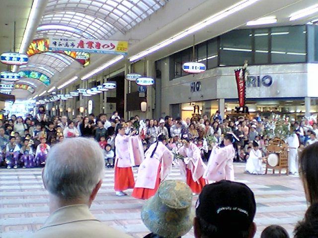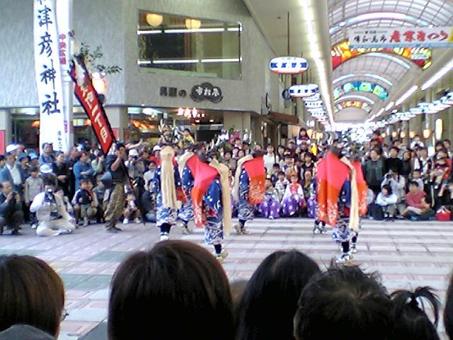まだまだ続きそうだったが,祭り見物は途中で切り上げて,商店街を見学.思ったよりも立派で,大街道の道の広さに銀天街の店舗を入れたような感じを受けた.