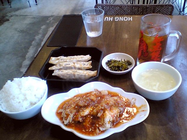 油淋鶏は「鶏唐揚げの甘味ソースかけ」といわれることもあるくらいなのでベースは甘いのだが,これまた予想以上に辛かった.伊達に赤くはないということか.