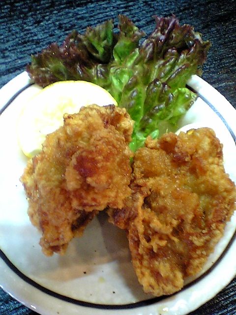 で,セットの唐揚げ.この天領,ラーメンだけでなく,地鶏料理も名物らしく,夜はそちらのメニューがメインになるとのこと.店の場所を教えてくれた学生さんも,地鶏料理が美味しいと言っていた.