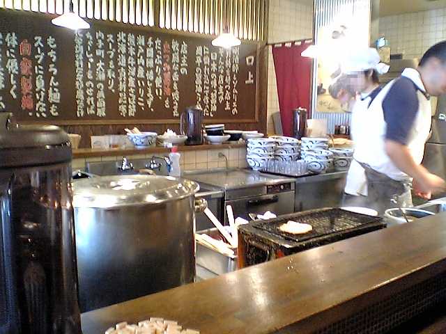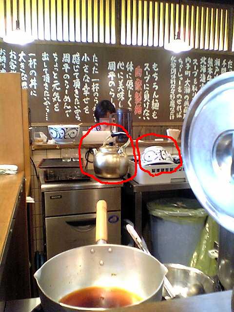 私が座った席の向こう側に,ラガーマンが使いそうな巨大なヤカンと,それとほぼ同じ直径を誇りそうな砥部焼きのどんぶり鉢が鎮座ましましていたのだ.