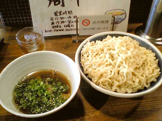 つけダレだが,色からして醤油ベース.店内の掲示などを見ると,こだわりの醤油を使っているらしい.