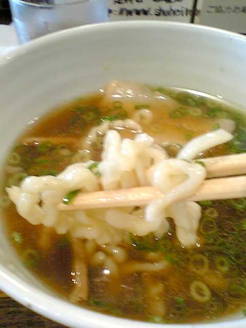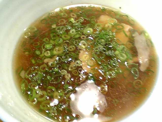 とりあえず麺をちょっと残しておいて,まずはスープだけを注いでもらって飲んでみて,それから残しておいた麺をスープの中に入れてみよう.