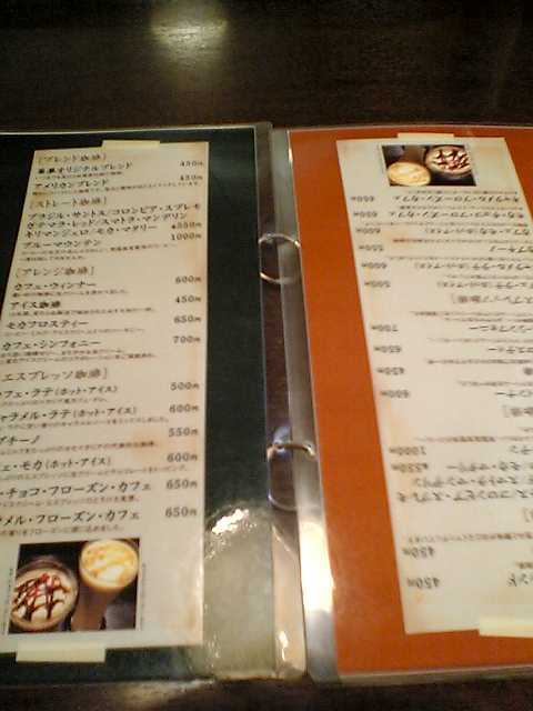 私はテーブルの向こうに相手がいる場合,どちらから見てもメニューが横向きになるように置くので,すぐには気が付かなかったのだが,テーブルの向こうの相手にも読みやすくするために右と左で上下が逆にしているようだ.