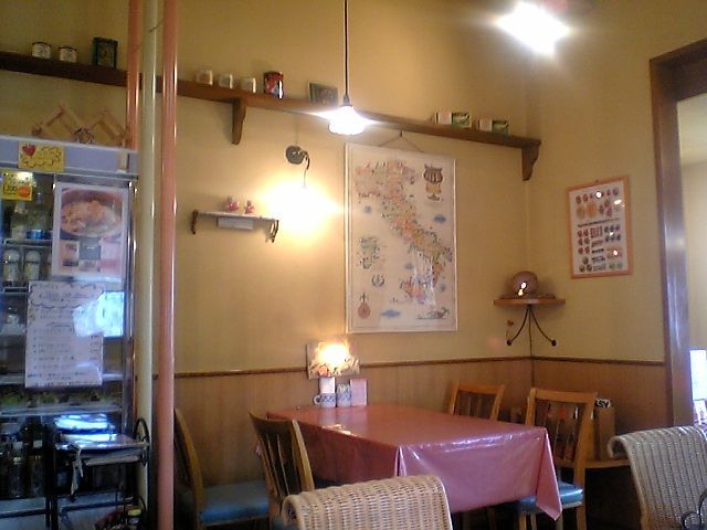 4人掛けのテーブル席が1つか2つ,1人掛けのテーブル席が4-5つ,あと,この写真の左側にカウンター席があるのだが,それを含めても20席少々というところか.こじんまりとした店だ.