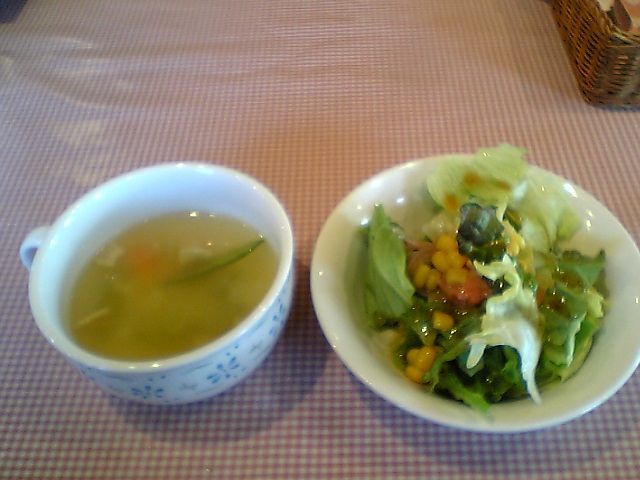 まずはセットのスープとサラダ.