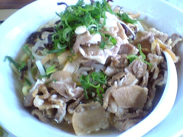 しかしラーメンではなく別の種類の麺類だと思って食べると,肉の甘み,スープの塩っぽさ,麺の独特の食感,がそれぞれ混ざり合って,なかなか旨いと思う.肉を食べたときの変な後味がなければもっと評価が高くなるんだけど.