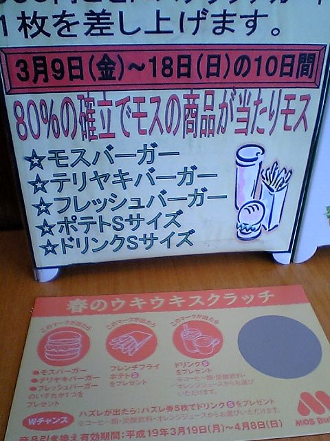 諸般の事情のため,今月中にあと3回ほどモスバーガーに行かなくてはいけない計算なので,どうせ行くならプラスアルファのある方が嬉しい.