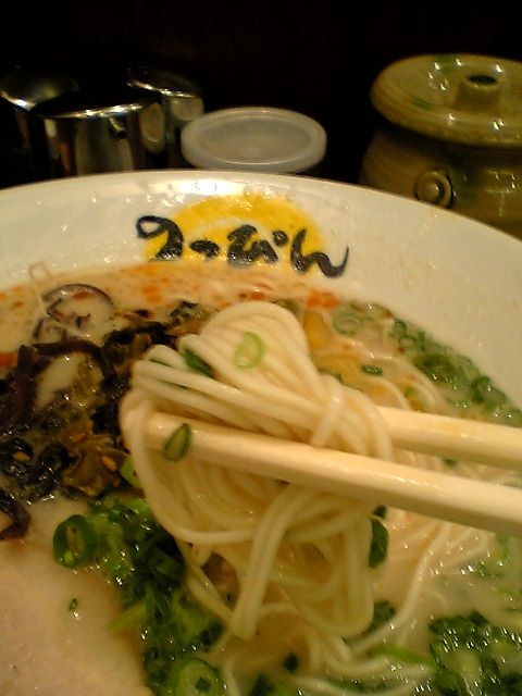 麺もストレートの細麺という,豚骨ラーメンによくあるタイプの麺.