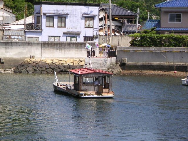 正確な場所が分からないので,とりあえず海まで出て,海沿いに自転車を走らせていくこと数分,それらしい場所に出た.ちょうど渡し舟(正確には艀(ハシケ)か)が岸を離れたところだった.