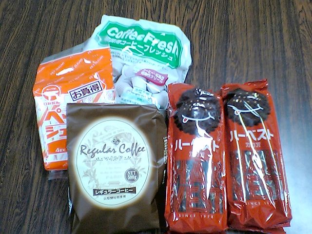 ちなみにコーヒー豆,砂糖,コーヒーフレッシュ,お菓子2つで700円弱.かなり安いと思うがいかがだろうか?