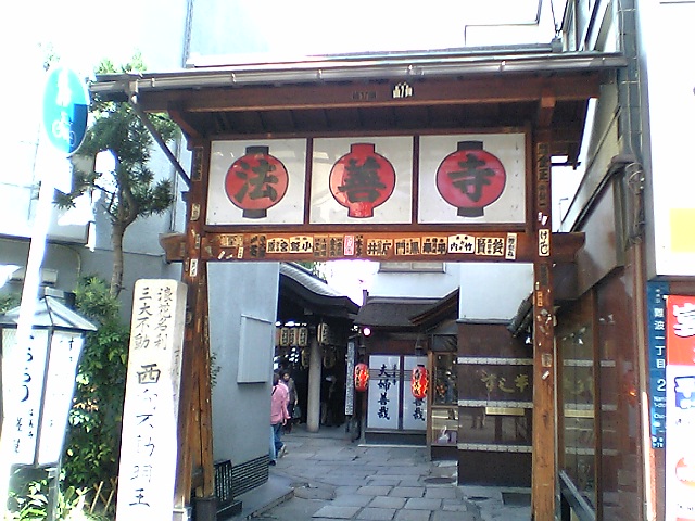 心斎橋を少し入ったところにある法善寺とその周辺の飲食店を指して法善寺横町といい,多数の観光客が訪れる名所になっている.この日も多くの観光客がお参りをしていた.