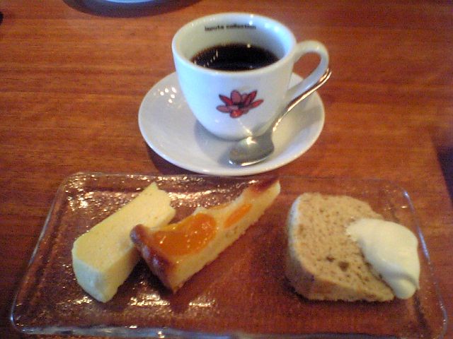 見て分かるとおり,チーズケーキ,クリームタルト(でいいのか?),シフォンケーキ.どれも美味しいのだが,さすがにケーキを3つも食べると少々飽きてくる.アイスかカップデザートのついている方を注文した方が賢明だったか.