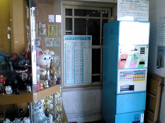 どうやら無人駅らしく,建物のうちの駅部分にはこの切符販売機,そして,この向かい側にベンチと自動販売機くらいしか置かれていない.
