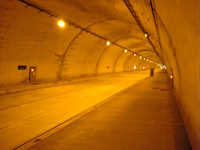 しかし長いトンネルだなあ.途中の表示を確認したところ,だいたい1.5キロくらいあるようだ.しかも微妙に傾斜があるのかな?