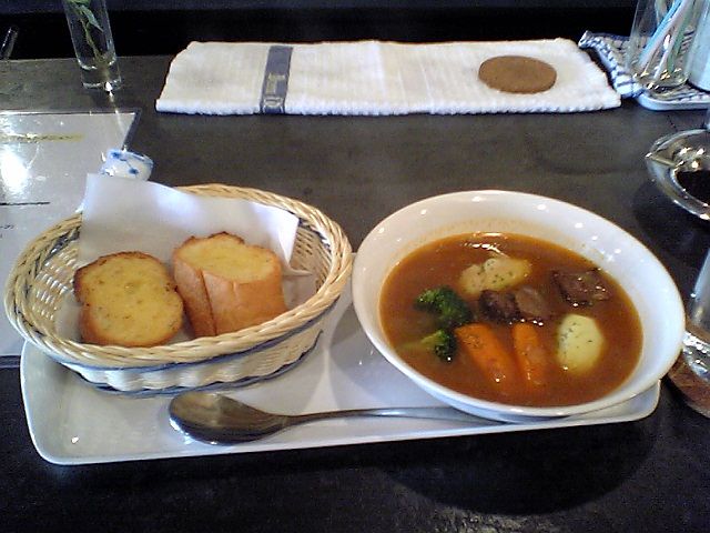 この日のスープは牛肉のブラウンスープだった.