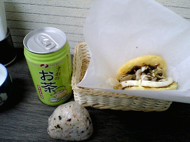 ミニコミ紙には単品で150円から300円とあったのだが,おにぎり+お茶(または小豆ケーキ)のランチセット(370円)があったので,それを注文してみた.