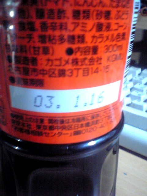 今年が2005年だから,製造から2年経過か.開封してから流しの下(いちおう冷暗所だ)に置いたまま結構経ってるけど大丈夫かなあ?