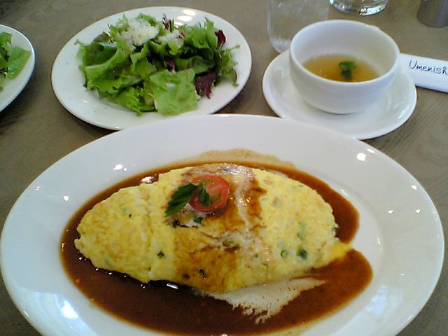 さて,お楽しみのランチだが,ランチメニューは結構充実していた.日替わりランチにしようかとも思ったのだが,展示されていたサンプルを見る限り,ちょっと量が少なそうだったので,「定番人気No.1」とあった自然卵のオムライスを注文.