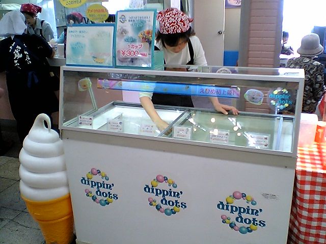 そういえば,この店の後ろには駐車場とイベントホールがあるのだが,この紺屋町商店街はそれらの施設を使ったフリーマーケットで有名らしい.その関係で,「四国でここだけ」というディッピンドッツを集客装置の一つとして販売しているのかもしれない.
