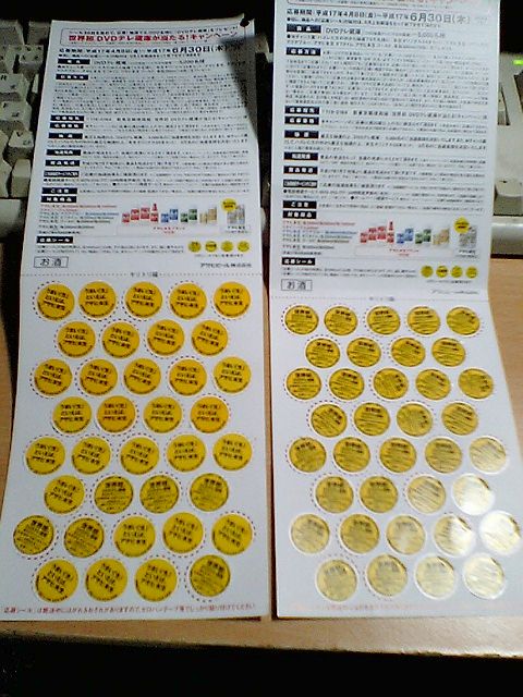 DVDテレ蔵庫の当選確率を上げるため,せっせとアサヒの発泡酒および第三のビールを飲んでシールを集めていたわけだが,このたびようやく2口目が完成した.