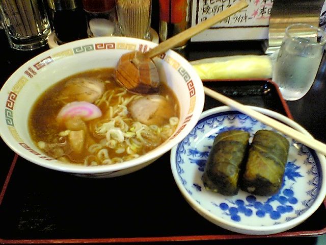 出張中,昼ごはんを食べようと店を探したところ,和歌山ラーメン&めはりずしのセットがある居酒屋を発見.両方とも食べたことがなかったので食べてみた.