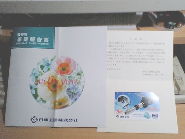 日東工器から株主優待が届いた.図書カード2000円分だ.