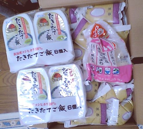 こうやって写真で見るとそれほどインパクトはないが,今回届いたレンジご飯200グラム×12パックの下にあるのは株主優待で届いた生米300グラム×12個×2箱,隣にあるのは自分で買った無洗米の残り200グラムくらいだ.