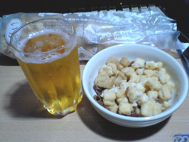 おかきにはやっぱりビールでしょ!