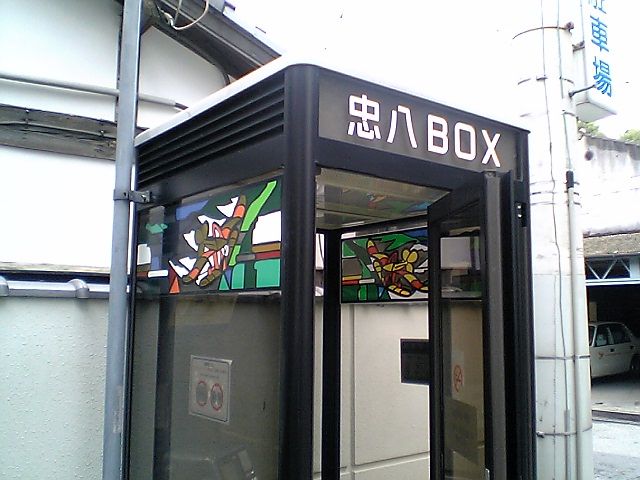 これだけでは何のことか分からないかも知れないが,八幡浜は日本における飛行機の元祖とでもいえる二宮忠八の出身地で,市内各所でそのことが謳われている.ちなみに,この電話ボックスの後ろにも大きなパネルがあった.