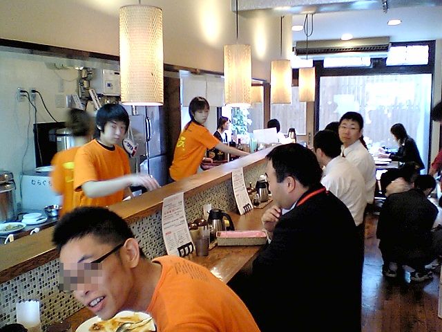 で,カウンター手前にもオレンジ色のシャツを着たモザイク付きの若者がいるが,彼は別にスタッフというわけではなく,偶然オレンジのシャツを着ていただけの知り合いの学生さんで,たまたま食べに来ていたようだ.
