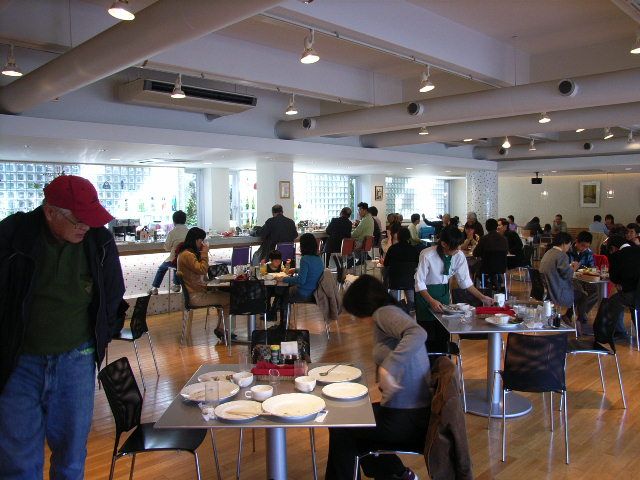 店内はこんな感じで,明るくてお洒落な店なのだが,客層がどう考えても大学食堂ではない.家族連れや年配の人が結構いる.どう考えても大学関係者よりも部外者の方が多いぞ.