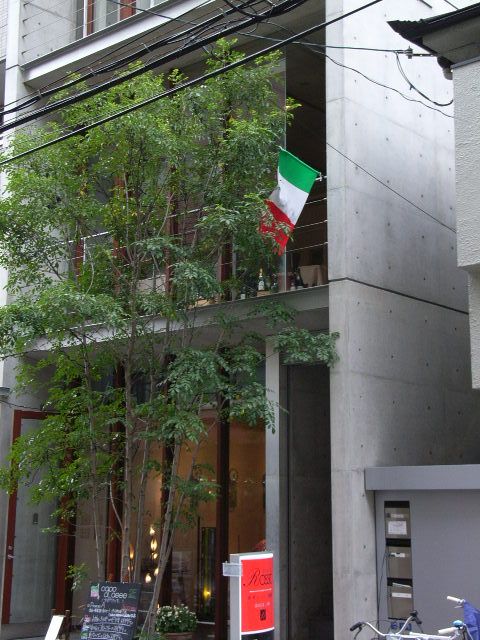 事前に地図で場所をチェックしていたのだが,店が二階にあるので気がつきにくい.よく見ると,イタリアの国旗が飾られているし,階段の前に今日のメニューが書かれた黒板があるんだけどね.