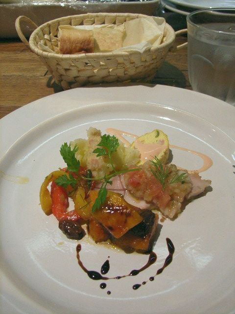 の計5種類.どれも美味しかったのだが,特に印象的だったのはカボチャ.おそらくバルサミコ酢がかかっているのだろう,カボチャの甘みとバルサミコ酢の複雑な酸味が合わさって,面白い味になっていて美味しかった.