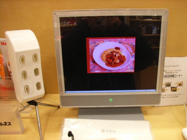 どうやら,画面上に表示される料理をクリックすると,この巨大コンセントのバッタ物からその料理の香りが流れてくるらしい.