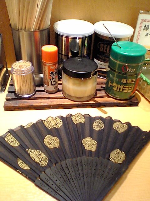満員で店内の写真を撮るのがはばかられたので,代わりにカウンターの上に置かれていたものを撮ってみた.