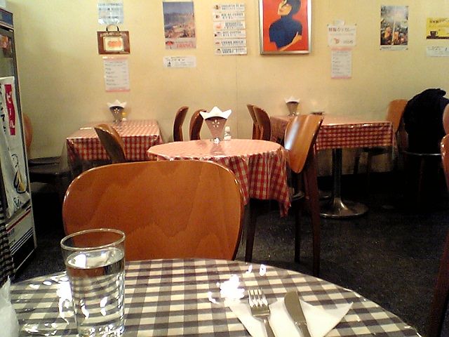 店内はこんな感じ.テーブルクロス&ビニールカバーがレトロ感を醸し出している.