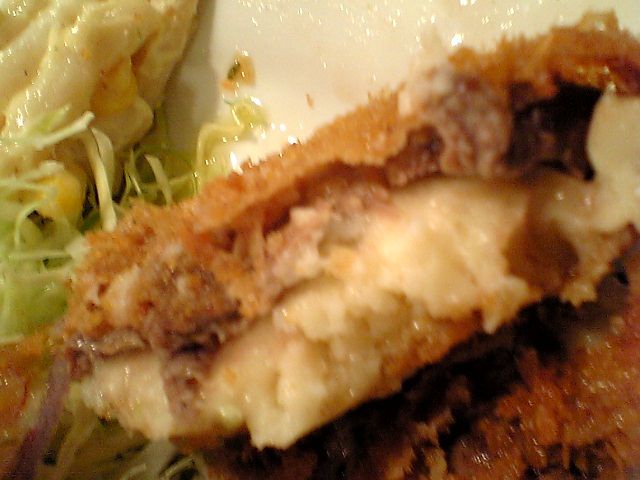 うーん,クリームコロッケよりも濃厚というべきか,それともモッサリしているというべきか... とろーっとした滑らかなクリームソースが入ったクリームコロッケが好きな人には受け入れられないかもしれないなあ.