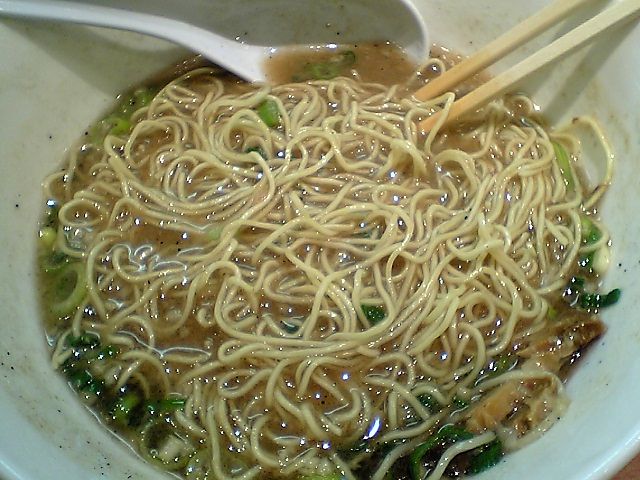 味自体は豚骨醤油らしいのだが,なぜか醤油っぽさよりも塩味を感じてしまった.なぜだろう? 干し蝦や干し貝柱などの魚介の乾物をたくさん使っているためだろうか. なお,マー油についてはあんまり記憶がない.