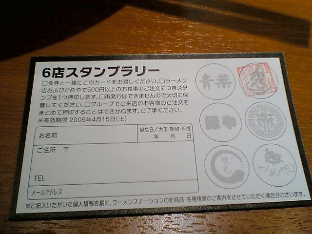 なお,ラーメンステーションの集客努力の一環として,スタンプラリーを4/15まで開催中だ.