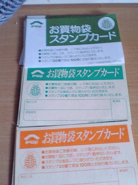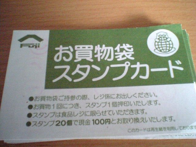 自宅の近所にあるスーパーマーケットのフジには,買い物袋を持参してレジ袋をもらわない場合にカードにスタンプを押してくれる制度がある.