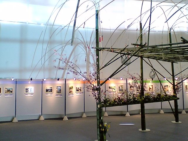 奥に並んでいるパネルには松山城の写真が飾られていた.どうやらコンクールがあったらしい.
