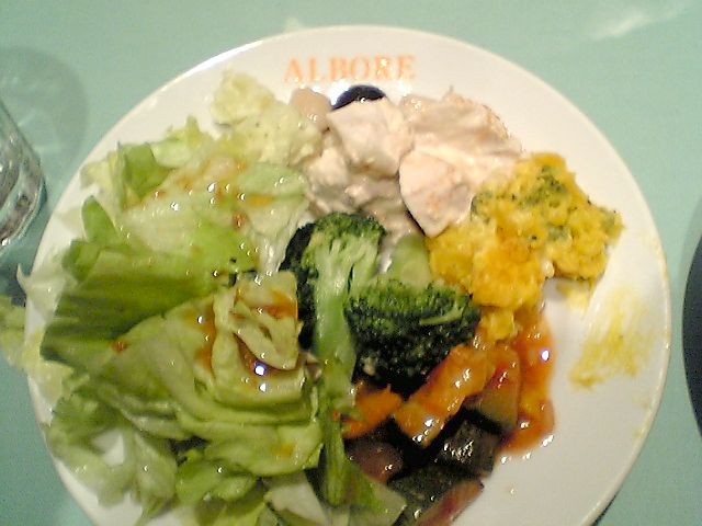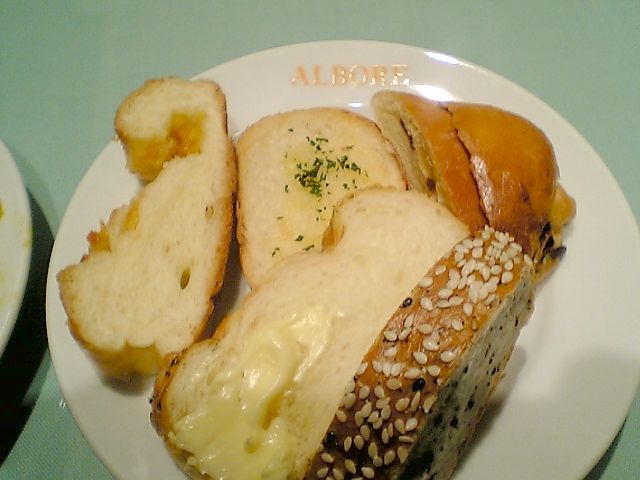 基本的にアルボーレのメニューにはアンティパストとサラダバーがついているのだが,ランチタイムはパンも食べ放題で,これはメニューにも書いてある.