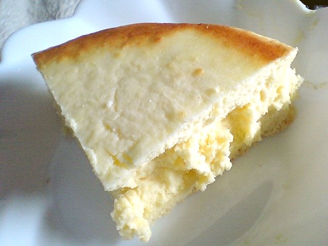 切るときに感じたのだが,表面がパリパリとしている.うーん,チーズケーキを切っているときの感触じゃないぞ.それに対して中身は普通のチーズケーキっぽい.