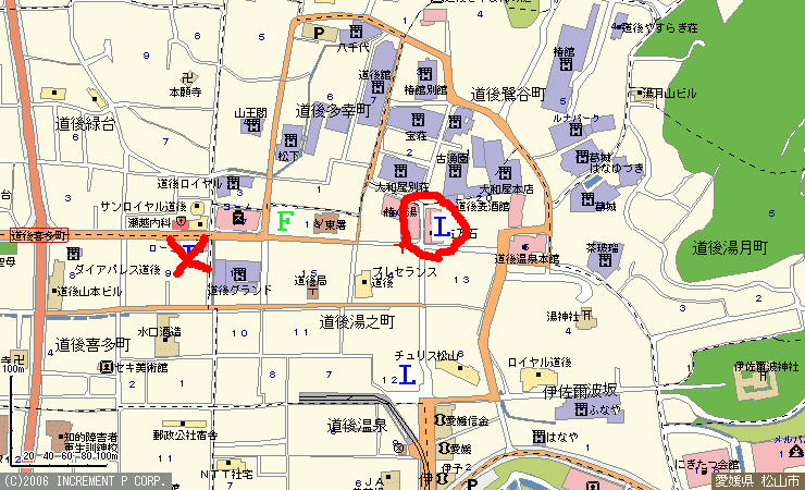 ただでさえ激戦だった位置にファミリーマートが出店してきたわけだが,ファミリーマートの方が道後温泉にちょっとだけ近い.