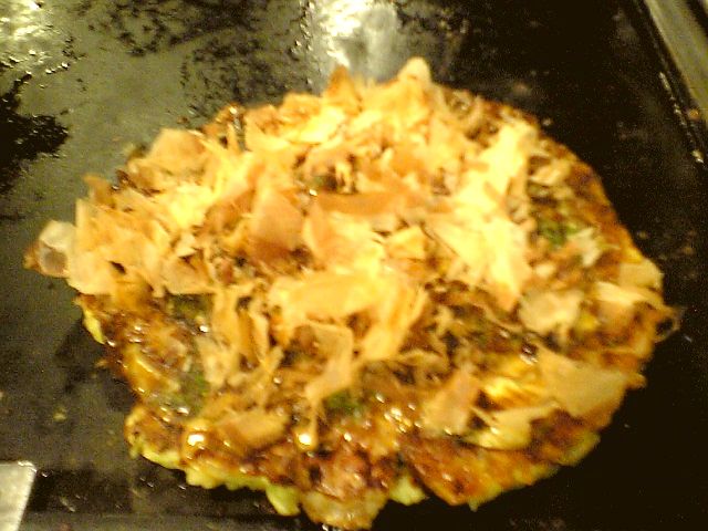 その上に普通のソースを塗って,マヨネーズをかけて,青海苔は少なめ,その分,鰹節はたくさんかけて...