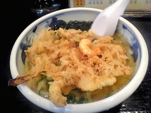 この店の名物は「かき揚げうどん」らしく,夏場は期間限定の「冷やしかき揚げ」もあるという.