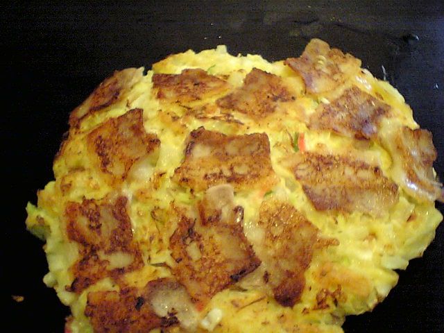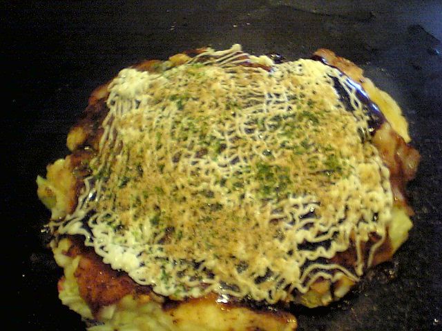 そうこうしているうちにお好み焼きが焼きあがった.