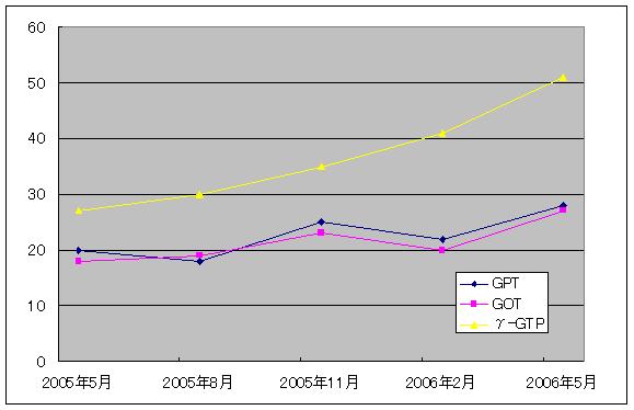見事なまでにγ-GTPのグラフが急降下している.