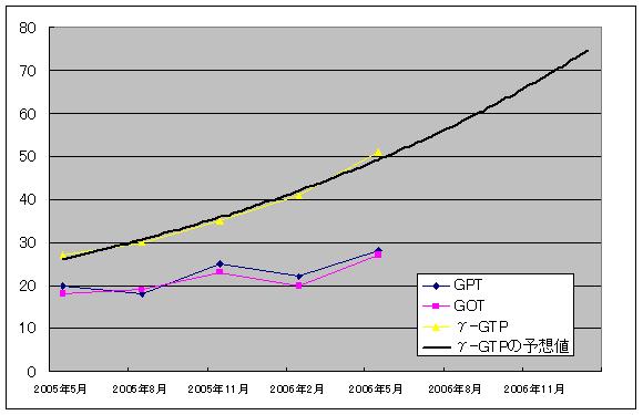 全体的に右肩上がりなのだが,特にγ-GTPの着実に上昇しており,その上昇ペースも増加している.